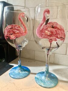 Class: 2 Pink Flamingo Wine Glasses with Michele