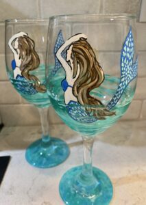 Create a set of 2 adorable Mermaid wine glasses you will love to look at and drink out of. No need for artistic ability because Michele will guide you step by step. Grab your friends for a fun time creating these adorable Mermaids.
