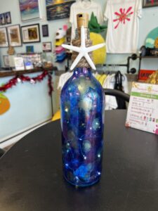 What's included: large wine bottle, alcohol ink, rope, starfish, and all supplies necessary to complete the class.