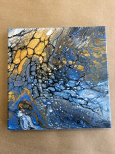In this class we will be making (2) paintings on 8x10 and/or 11 x 14 canvas pouring using the dirty pour or flip-cup techniques.