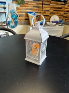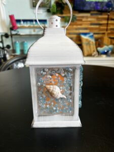 This lantern is going to be transformed into a beautiful 10 inch beach lantern by you! This is a rustic looking plastic lantern with 4 glass panels. You will decorate each panel with shells, glass, embellishments, etc. Then you will add UV resin and put it under a blacklight to harden. These have a battery powered candle included! Use it to decorate any space in your home! These can go home the same day. This is going to be a popular class and supplies are limited.