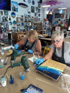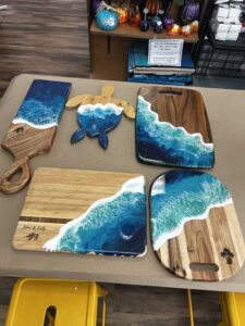 This is the resin class you’ve been waiting for! Ready to dive into the world of resin art? Join Stacey, owner of Pineapple Picasso, as she guides you step-by-step in creating a stunning ocean wave on your very own bamboo cutting board! Want to go bigger? You can upgrade to a larger board when you arrive. These beautiful boards make amazing gifts—or keep it for yourself as a handmade treasure!