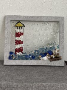 Let's make a lighthouse! We will use crushed glass and shells to make a lighthouse.