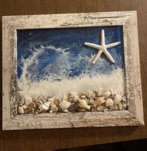 We love those beach waves here at Pineapple Picasso! Learn how to create an 8x10 glass frame of a beach scene using resin, paint, and assorted beach items.