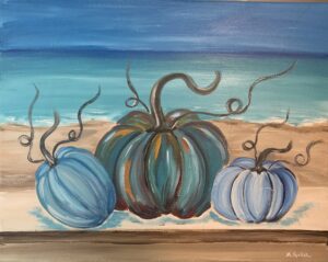 We celebrate fall a little differently here in Florida. In this class, you can create a tropical pumpkin painting. Gather your friends and sign up together for this step by step instruction on how to create this tropical painting. No artistic ability needed – Michele will walk you through each step.