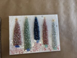 Create a stunning holiday masterpiece you’ll be proud to display! 🌟 In this class, you’ll design a beautiful crushed glass trees on a 9x12 wood plank, then finish it off with a glossy resin coat that makes it sparkle and shine. This one-of-a-kind piece is the perfect addition to your holiday décor—or a handmade gift that will be treasured for years to come. Don’t miss out on this festive, creative experience!