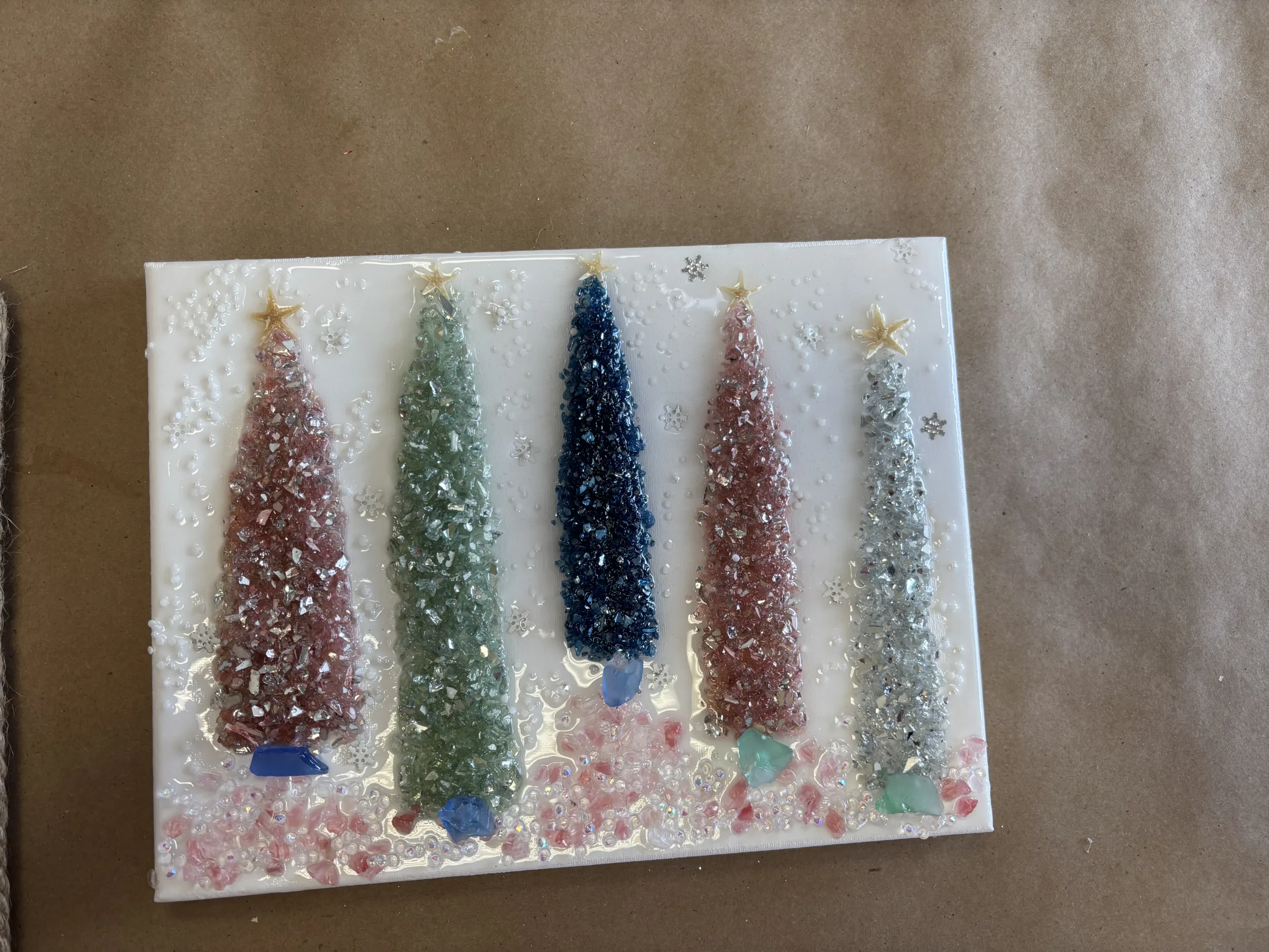 What’s included: crushed glass, resin, 9×12 board, embellishments, and all supplies necessary to complete the project.
