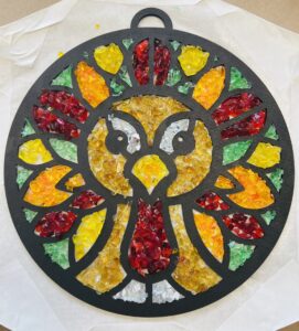 Create a festive masterpiece this season with our Turkey Faux Suncatcher class! You’ll design a colorful turkey by filling each section with vibrant crushed glass, then finish it off with a glossy layer of resin that makes it shine like stained glass. This fun and creative project is perfect for fall décor—and even better, it’s one-of-a-kind because you make it yourself!