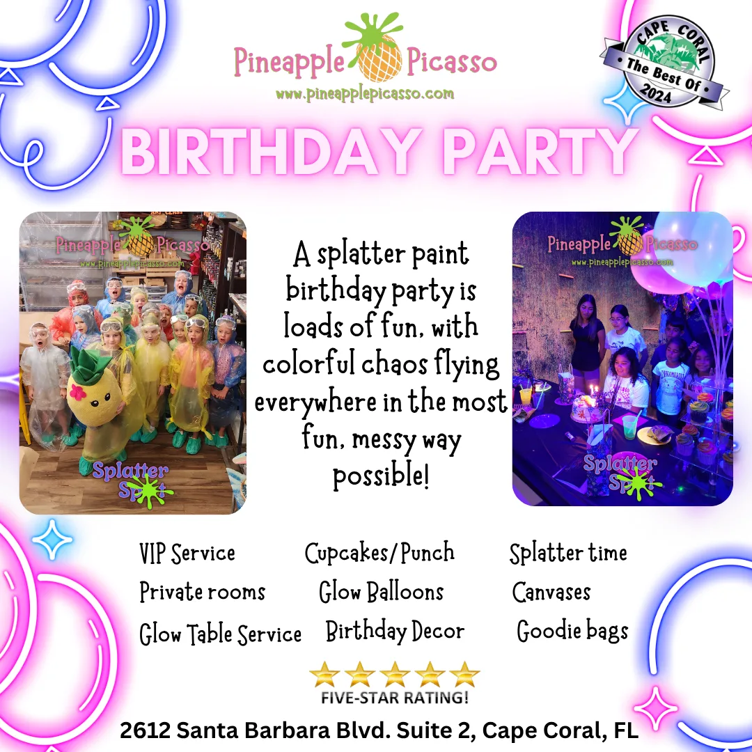 Why Pineapple Picasso Birthday Parties are fun things to do when it’s raining in cape coral florida