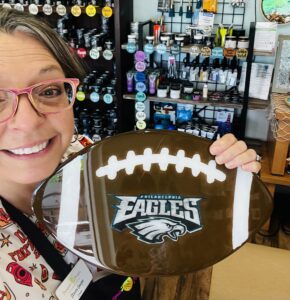 Show your team spirit in our Football Team Sign Art Class! 🎨🏈 You’ll start by painting a 14x9 inch football-shaped board — the lines are already etched, so it’s easy to follow. Next, you’ll cut out and decoupage your favorite team logo (provided for you) onto your board, then finish it off with a smooth layer of resin for a glossy, professional look. It’s the perfect piece to show off in your home, lanai, or game-day space!